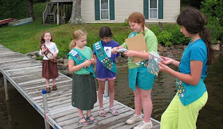 The older girls had planned the ceremony and all was going well until it was time for G. to give her sister her badges.