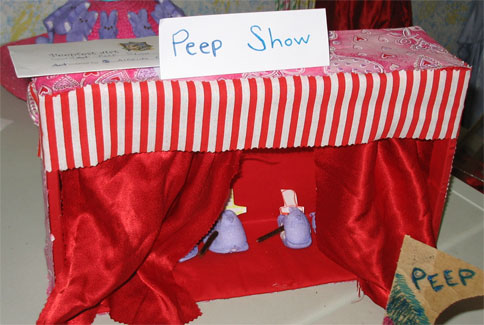 L.’s “Peep Love.” She enjoys making shadow boxes and last year’s “Peep Show” that included purple peeps with canes and hats dancing behind a curtain was really cute. She still hasn’t figured out why the adults thought that one was so funny though…