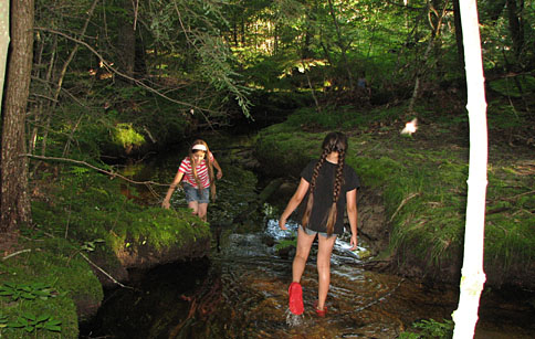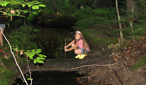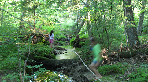 They visit at least a couple of times a day to make up stories, cool off in the stream and climb around the logs.