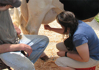 C. had a chance to milk a cow at Smiling Hill Farm during Open Farm Day.