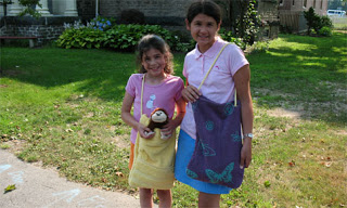 The girls were signed up to take a sewing class at our library this past week and they had to bring a beach towel. They were going to cut and sew the towel into a beach bag.