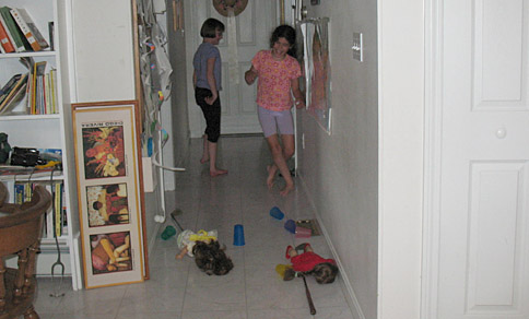 L. decided to modify the indoor bowling/golfing game she and her sister came up with last January.