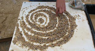 G. got tired of looking for gems (she had a full baggie of them) so she decided to make designs with the smaller rocks on her table.