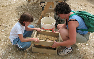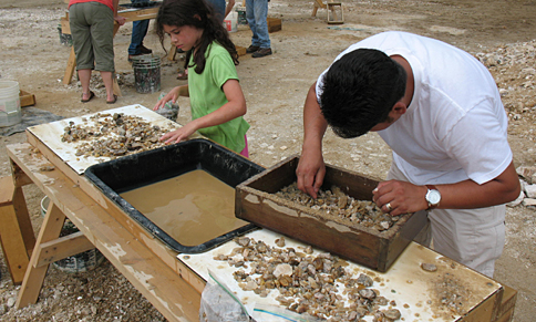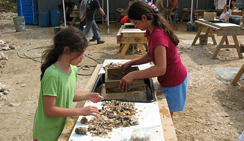 Afterwards the kids sifted small amounts of dirt and rocks from their bucket through a screen.