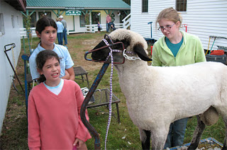 The girls also did some chitchatting with their 4-H friend C. who was grooming her sheep to get ready for the 4-H sheep events this week.
