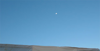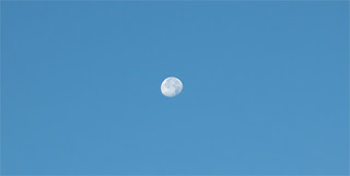 L. told me she was distracted with the moon she could see in the daytime sky and had to take a picture of it instead of doing her float job. I downloaded more than a couple of moon shots from the camera so maybe daddy was justified with his horror movie scare tactic.