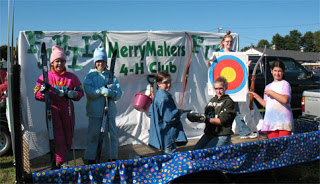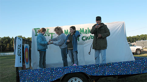 The kids chose three activities that they enjoyed this past year with their club to include as part of their float for the parade’s “Family Fun” theme. I thought the apple headband was a nice touch on the archery section.