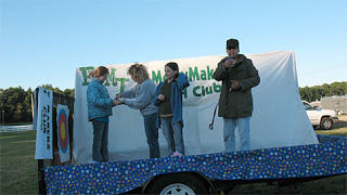 The Cumberland Fair’s parade around the racetrack was this morning. The wake-up call for the girls was 4:30 a.m. to get to the fairgrounds early to help put together the float their club had planned for the parade.