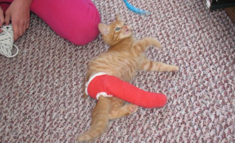 Then Fino and the girls decided to foster a kitten who was abandoned with a broken leg and he showed up at our house this week. I’ve been assured by the girls that they understand we are just helping him heal and taking care of his leg before he’s adopted — that we aren’t keeping him.