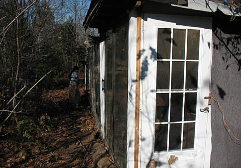 Then he built the enclosed portion the following fall/winter and includes glass sliding doors he found at the dump. It’s great to have a full wall of windows for a south-facing coop (more light=more eggs and happy chickens). Then he added the other end of the wired coop when our flock grew to 30 a year later so they had space to spread out.