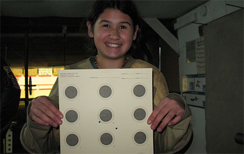 But it all worked out. Once she made a couple of shots right-handed, one of the instructors realized that although she was missing her own target, she had hit her sister’s instead (which was to her left). G.’s instructor asked her to switch trigger arms (so she was shooting lefty even though her rifle wasn’t designed that way) and she was able to hit her own target a couple of times, much to her delight.