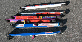 Roller skis are a shorter version of cross country skis that have wheels on the bottom of the skis. The bindings on roller skis match the NNN and SNS style of cross country boots.