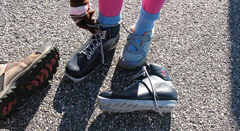 The girls brought their cross country ski boots and as soon as they locked into the bindings of the roller skis, they both commented on how weird it felt.