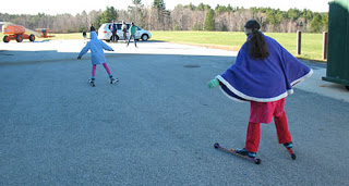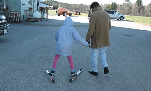 The trick of either ski is that there is no break built on to the roller ski to stop. That made the girls a little nervous but on the flat, smooth surface of the driveway, stopping was not a big issue.