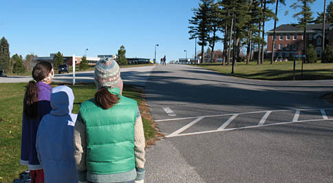 After the girls took off their borrowed roller skis, we watched the competitive rollerskiers race around Pineland Farms for the Duathlon race. The girls and their friend (her dad was rollerskiing for fun with the competitors) cheered everyone on as the racers made three loops around Pineland Farms’ course.