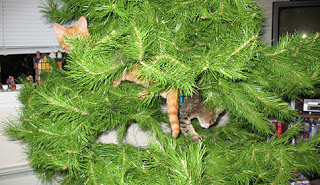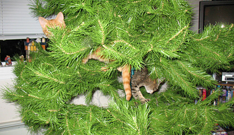 Of course the girls could help get the tree decorated sooner if they didn’t encourage the kittens’ antics and they actually tried to get them out of the tree.