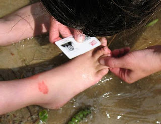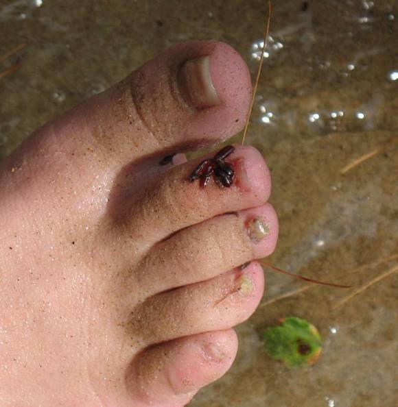 So I called it quits for her and took a moment to scrape the little suckers off my own foot and the one my 11-year-old friend found on her back. The other two girls were completely clear (and I noted that neither of them had an open cut on their bodies either).