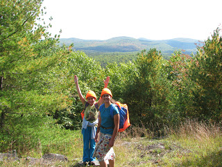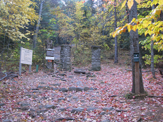 This is a nice introduction to mountain climbing for little ones with the incentive of seeing the stone tower at the summit. For a first hike on this mountain, I’d suggest the Ledges or Woods trails because they are the shortest routes to the summit. Park at the trailhead and walk back out to Douglas Mountain Road. Take a left and follow the paved road up the hill to the old trailhead (about ¼ mile). There is no sign to direct you to the Ledges Trail from the new trailhead but once you find the old trailhead, the Ledges Trail (on the left with the stone pillar) and the Woods Trail (on the right) are easy to follow to the summit. The hike from the parking lot to the tower at the summit is about a half-mile total. The Eagle Scout Trail, the one at the trailhead, is a bit longer.
