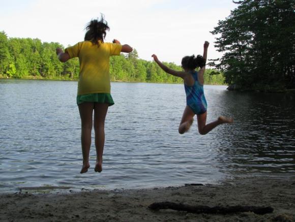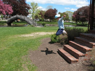 As you can see, L. does not jump off things (though with a bit of trick photography, she’d like you to think she does). No, she jumps while standing still wherever she might be just for the fun of it. Sort of like 2bie&newbie’s notion of finding life’s bubbles, L. jumps for the simple enjoyment she finds in doing it.