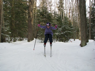 And let me clarify that jumping from a standing still position on cross country skis is no simple task. I gave it a whirl and it was a bit trickier than L. made it look.
