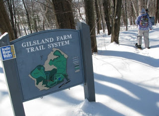 Gilsland Farm is a great place to take little ones on an adventure in winter (or any time of year). The trails are well marked and the Visitor’s Center offers snowshoe rentals for kids and adults ($3-5) so it can make for a nice introduction to winter (and early spring) hiking – and birding – for families with young children.