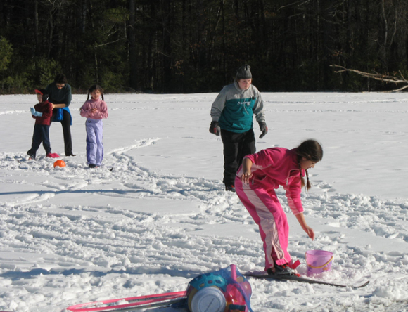 About five years ago I took a class through the Maine Winter Sport Center’s Healthy Hometowns program. The class was geared for adults who planned to work with novice skiers to teach them the basic skills of cross-country skiing (it was my first year organizing a 4-H ski club). This class had the adults playing several variations of tag, skiing through hula hoops and participating in other games that had many of us shaking our heads and wondering what the heck we’d signed up for. But after a successful slide on my skis through a hula hoop (with a less than stellar landing once I cleared it) I realized the point of the class.