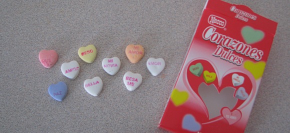 So when my mom saw Dulce written on the box, she said she couldn’t resist buying this particular candy for the girls (she knows how much they LOVE their cats). Now G. is thinking maybe we need another cat because she has lots of new naming possibilities thanks to these candy hearts … or maybe for the sled dog she really wants. But no, I’m still holding strong and she is not getting a dog (or cat) for Valentine’s Day this year. A girl can wish though.