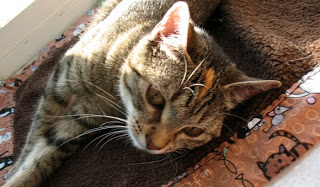The girls have given their cats Spanish names throughout the years (they have a Spanish heritage with Fino’s side of the family). The names have included: * Chion (cry baby) A very fitting name for that cat; he died last year. * Besos (kisses) She died a few years ago. * Dulce (sweet – but actually the cat’s full name is Dulce de Leche in honor of the caramel spot on her forehead) She’s a year-old indoor cat.