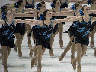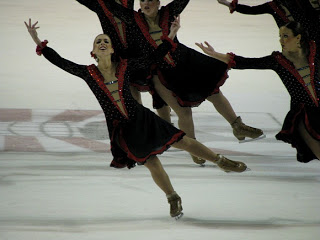 The girls have enjoyed the costumes at the Synchronized Skating Nationals. I’ve admired them too but the mom part of me can’t help but dwell a bit on how much money was dished out to pay for them (even my girls were in sticker shock at the prices).
