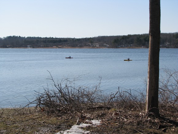 The girls were not convinced it was boating weather yet but were impressed these kayakers were out paddling.