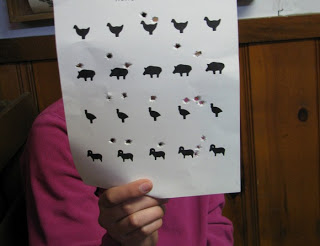 These targets were quite a bit smaller than the usual bulls-eyes and according to L, “The little animals were even more tiny through the gun sights!”