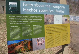 - Approximately 190 million years ago, what is now the Connecticut River Valley area was a subtropical landscape of lakes and swamps. Two-legged, carnivorous dinosaurs made footprints in the mudflats, which were periodically wetted and dried. Sediment slowly covered the prints, protecting them from erosion. Over the eons, they were transformed into rock and buried underground, until workmen constructing Route 5 unearthed them in the 1920s. In the early 1970s, Yale University Professor John Ostrom identified these tracks as being from three distinct, though related, dinosaurs: The largest prints (11-13 inches long) were from Eubrontes giganteus, which stood 15 feet tall and had a 5-foot stride. The intermediate prints (6-8 inches) are from Anchisauripus sillimani, and the smallest (3-5 inches) from Grallator cuneatus. The most remarkable part of Professor Ostrom’s work was his determination that almost all of the 134 footprints he studied were part of 28 distinct trackways, leading in very nearly the same direction. The tracks at this site thus documented for the first time that some dinosaurs were not always solitary, but tended to travel as a “hear, pack, or flock.”