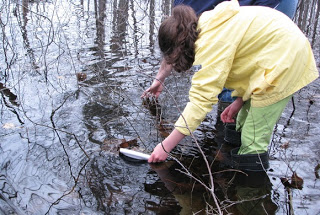 So with a lot of information thrown at the room full of citizen researchers (i.e., the many volunteers of all ages who signed up to help with the project) during the lecture part of the training, we went out to an actual vernal pool to get the hands-on part of our lesson.