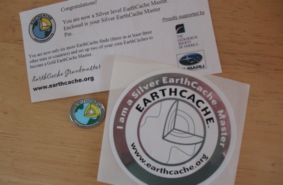 We’ve been working on the Geological Society of America’s EarthCache Masters program for a year and have now earned our Silver (second level) Masters pins. The kids were pretty excited when they arrived in the mail yesterday.