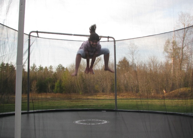 After many years of indecision (on my part, the girls have been ready for YEARS) I finally let the girls buy a trampoline (they paid 2/3 of the cost, I paid the difference). And now they are both in their glory with their new toy that has them bouncing all day long, literally.