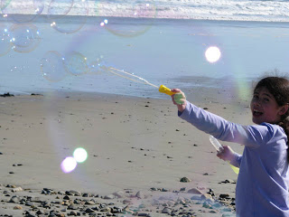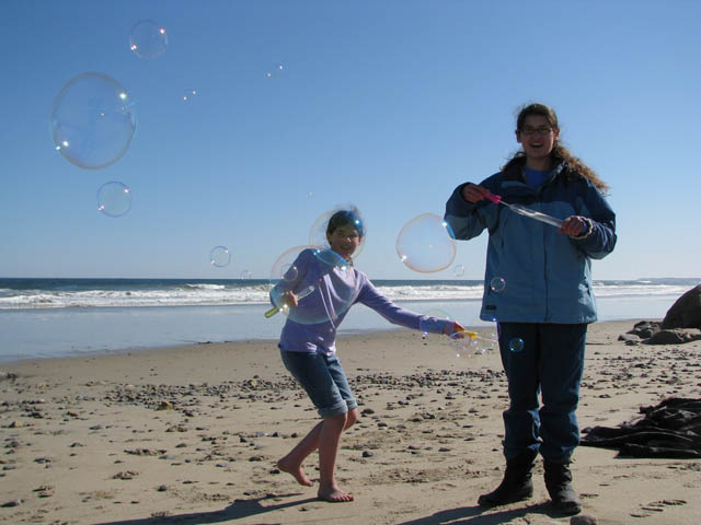 In packing for this hike, I also included two bottles of bubbles because even though my girls are 11 and 12 years old, this is an ageless source of fun on the beach for us.