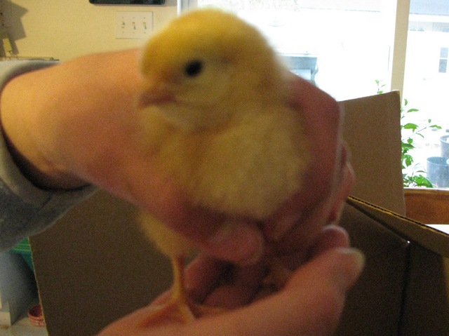 Because baby chicks are cute, my girls thought I should share a couple of pictures of our new friends (which will bring our poultry count up to a little over 30 again after losing a few hens to old age and predators over the winter – we don’t raise meat chickens, just egg-layers).