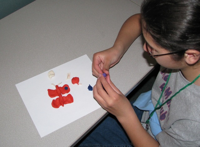 The kids were given a few minutes to create a clay creature before being set up with the camera to create their claymation movies.