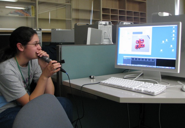 G. in the New Media Lab working on her claymation project. (I’ll share more about how to do this as it was quite easy!)