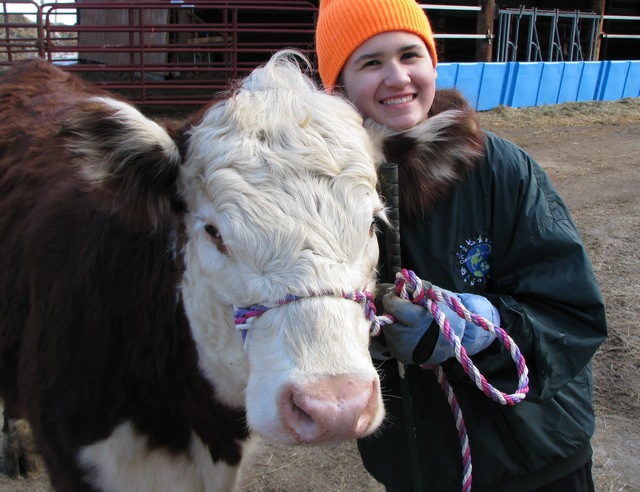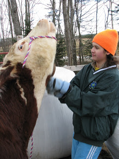 Today I am hosting a Guest Blog that was written by my G. Her 4-H club hosted a demonstration night and her presentation was about getting her cow, Sparkles, ready for the show ring. She’s been working with Sparkles for a couple of years but this June will be the first time she’ll walk in to a show ring with her. G. prefers to simply be with the animals at the farm and isn’t interested in the competitive side of showing but agreed to give it a whirl this year at the 4-H Jamboree (mostly because she LOVES to groom and that’s a big piece of getting ready to show). This is a low-key event geared more to teach the kids the finer points of the show ring rather than the formal competition of a county fair. G. is a bit nervous Sparkles is going to show her spunkier side and be unruly in the ring but Sparkles’ owner (G. leases the cow from the farm she works at every week) thinks G. can handle whatever Sparkles dishes out. G. has some good upper body strength and instincts when working with large animals so even when Sparkles bucks or tries to run, she gets her under control without ever losing her hold on the halter rope. And having seen the antics, this is much easier said than done.
