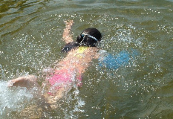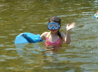 I believe L. became a stronger swimmer simply from the strength it took to paddle with a lead weight on her arm for two summers in a row. (Swimming had been part of her PT program and her favorite activity as a toddler/preschooler so saying no to it during the summer was NOT an option. The ‘sock’ was a life-saver and perfect compromise for us.)