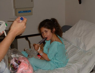 The surgery required she be put under anesthesia and we assumed she’d be out of it for at least a couple of hours and miss the show. But we brought along the pink tutu to the hospital to appease her.