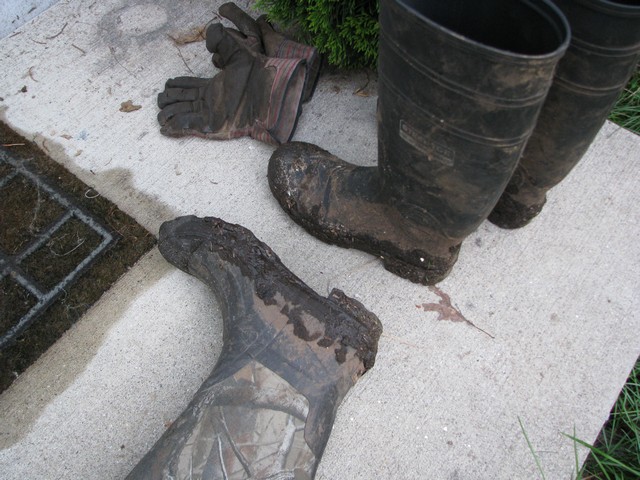 I’m grateful for today’s sun because I’m hoping it dries up some of the mud in the pig pen. The pigs, who I mentioned previously have a mission to dig to China in them, have completely destroyed all the grass in their living space. And because of that and all the rain we’ve had the past few weeks, walking in to the pen to feed the pigs has been a very messy ordeal that absolutely requires tall rubber boots.