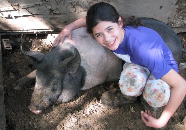 Learning #4: Pigs love stale animal crackers. They grunted and nudged L. relentlessly after she gave them a handful of crackers looking for more. She felt so bad she didn’t have any more that she fed them each a jelly sandwich (a rarity because the pigs are exclusively grain-fed). They wanted more of those too and L. decided they were never going to be satisfied so she stopped feeding them with a declaration, “You guys eat like pigs!” (She’s quite enjoying her own pig humor these days.)