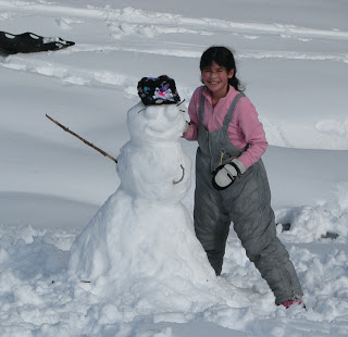 No winter is complete without at least a few snow people to decorate the yard after a storm. The girls get more creative every year with the details of their creations. And for my 11-year-old, eyelashes on her snow people are a must.