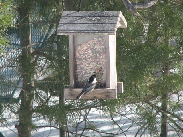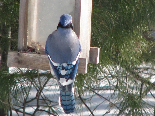 The chickadees usually manage to sneak a few seeds when the blue jays aren’t looking.