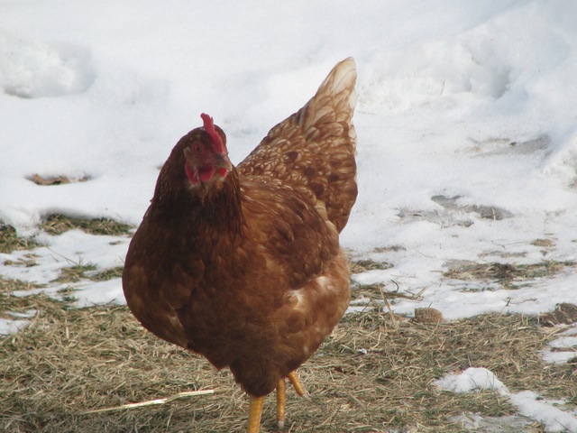 We try to keep our chickens away from the feeders as a general rule but every once in a while we have a renegade that stops by the investigate, and hope a few seeds are dropped by the wild ones.