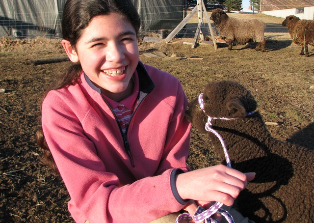 L., dubbed the “family lawyer” by her parents and sibling for arguing points she believes are always right, could not talk or reason her way in to convincing her 3-week-old lamb, Midnight Minette, to do any sort of directed walking with a halter yesterday at the farm.