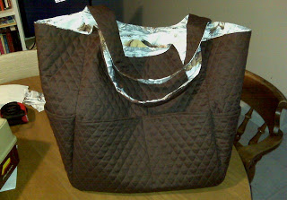 So she found some durable brown quilted material for the exterior of the bag and used the white horse material for the lining.
