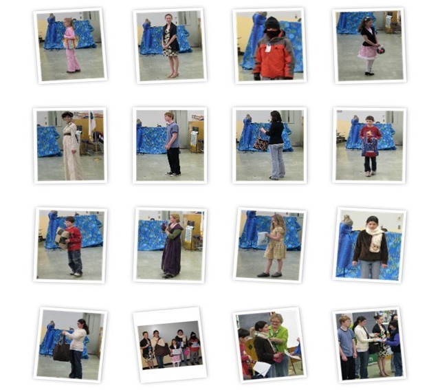 The Fashion Revue was larger than in the past couple of years. I didn’t get pictures of all the adorable Clover Buds (the 5-8 year olds who made pillows and scarves) but I caught a few of the great projects the older kids (and a couple of the younger ones) made for the revue this year. The projects were as diverse as the kids who participated. Projects starting from top left – tote bag, party dress, balaclava, skirt, historical costume, linen pants for historical re-enactments, crochet purse, grocery tote bag, pillow, historical costume, pillow, crochet scarf and tote bag.